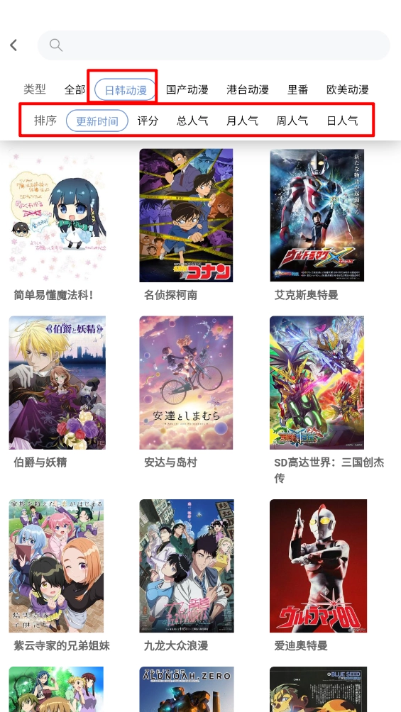 如图,可以根据排序进行选择喜欢的日韩动漫。