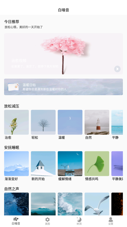 3. 舒缓音乐:挑选轻柔的音乐,助力用户在惬意的环境里减轻压力。
