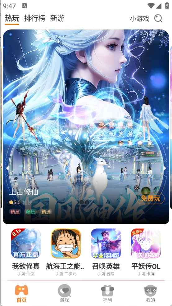 首页汇聚了丰富的游戏资源,涵盖热玩、排行榜和新游等板块。