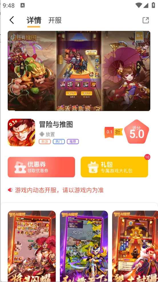 游戏页面对游戏做了详细的分类,涵盖了三国、策略和冒险等类型。