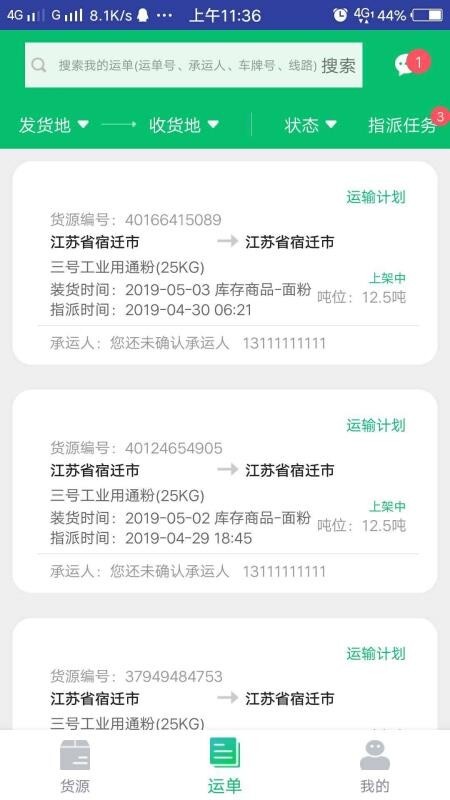 2、查看运单资源,实时选择运单即可立即查询