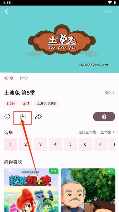 进入动漫播放详情页点击""图标。