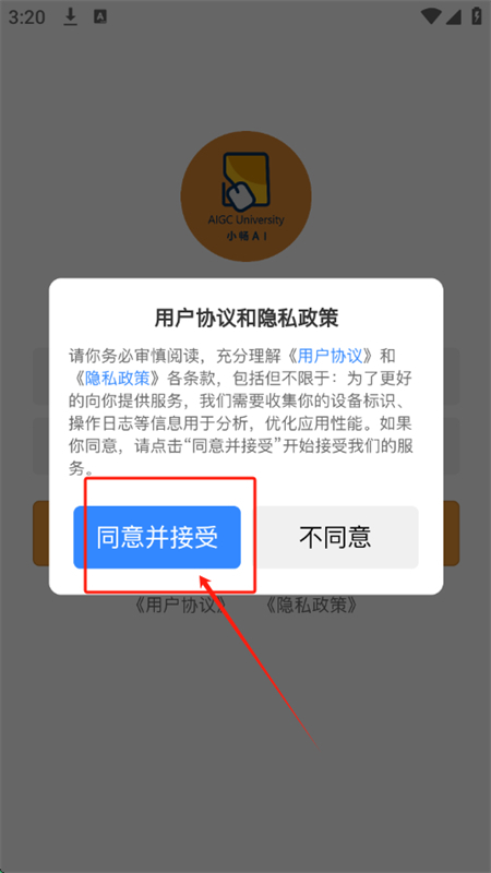 2、点击同意协议政策后再进入主页