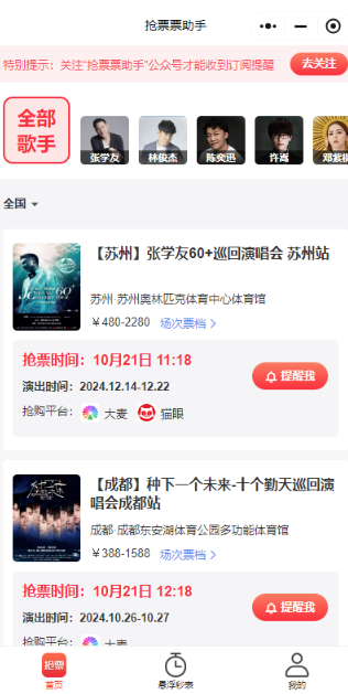 - 标签: 抢票助手 演唱会抢票工具 门票预约神器