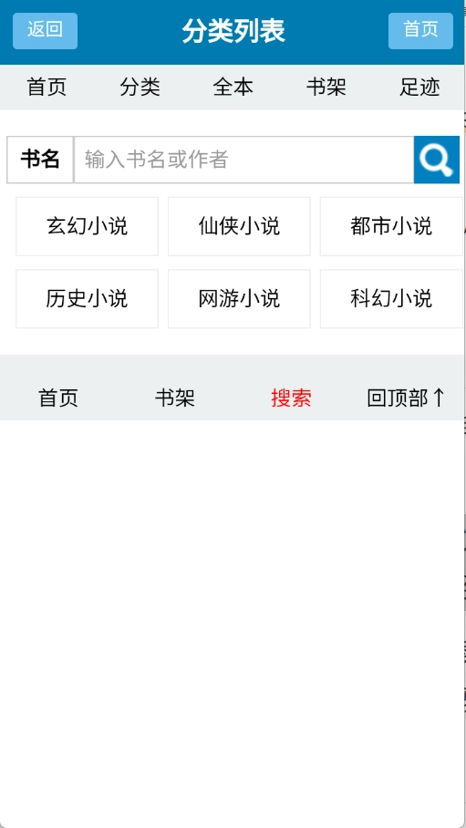 进入到首页之后,有很多的小说资源类型。