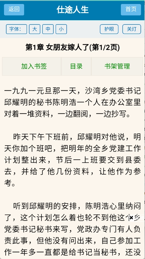 阅读界面十分舒适,字体大小可以调节,能够满足不同用户的阅读习惯。