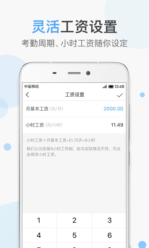 2、支持录入月基本工资金额,并据此自动计算对应的小时工资;