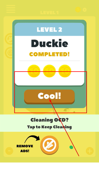 3、把【小黄鸭】的所有污渍都清理干净后,点击界面上的按钮,来推进清洁进度。