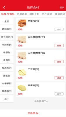 4.自由选择食材,也可以输入产品名称进行搜索;