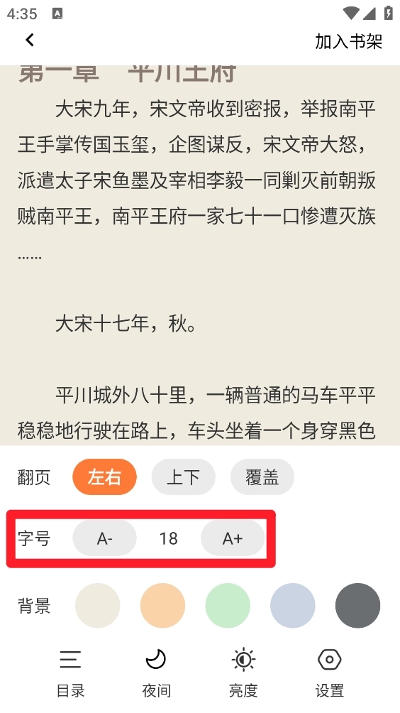 3、护眼阅读体验:夜间模式与多档背景色、字号调节,支持左右 / 上下等多种翻页方式,长时间阅读也能保护眼睛,阅读更安心。