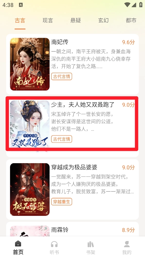 2、阅读听书双模式:支持文字阅读与 AI 语音听书一键切换,听书时可调节语速、设置定时,解放双眼,通勤、睡前等场景也能继续追更。