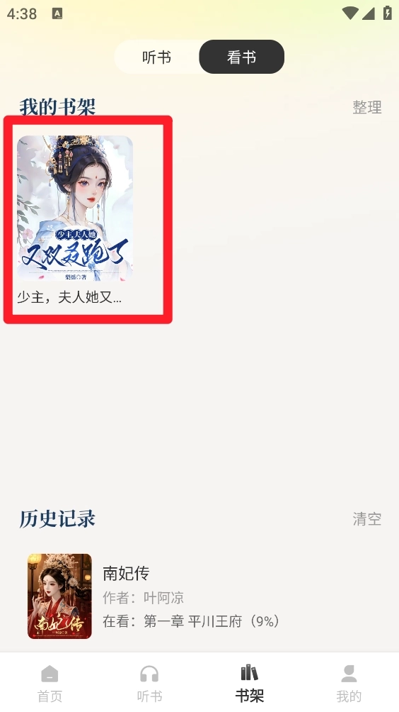 3、返回主页,进入书架板块就可以查看所加入的目标资源。