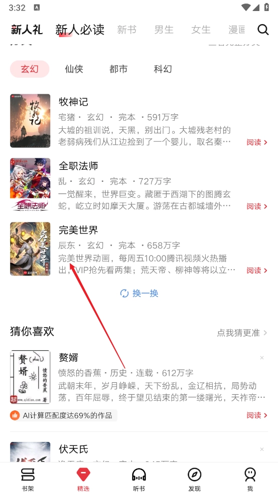 打开软件,在精选板块选择喜欢的小说。