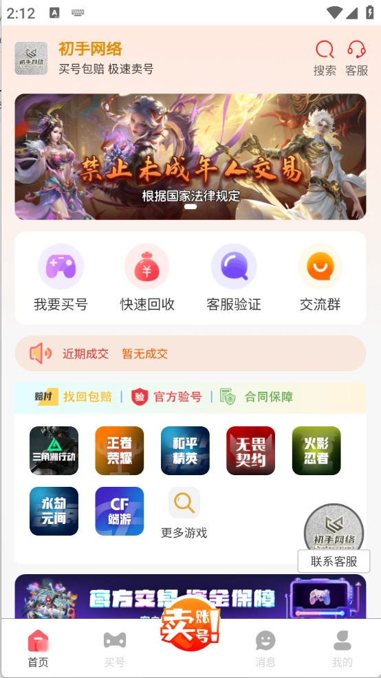 初手网络是一个靠谱的游戏账号交易平台,涵盖手游、端游等多种类型。平台上所有游戏账号均经过严格审核后才允许发布,页面设计简洁明了,还设有详细的游戏账号分类,能帮助玩家快速找到心仪的账号。我们致力于为广大玩家提供安全可靠的交易服务。