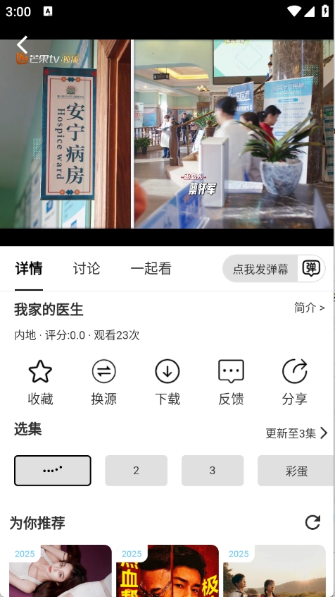 点击你想看的影视就能进入播放页面,在那里可以挑选集数观看,还能发送弹幕和分享影视等。