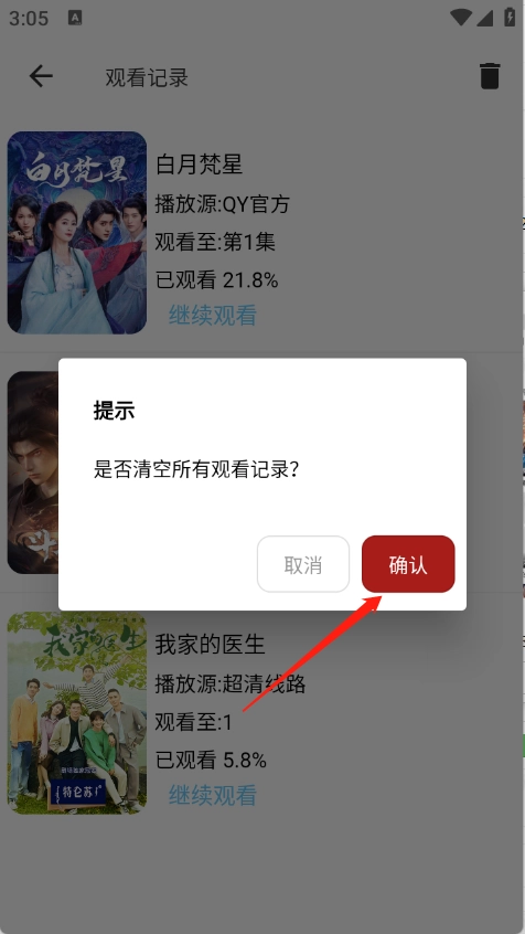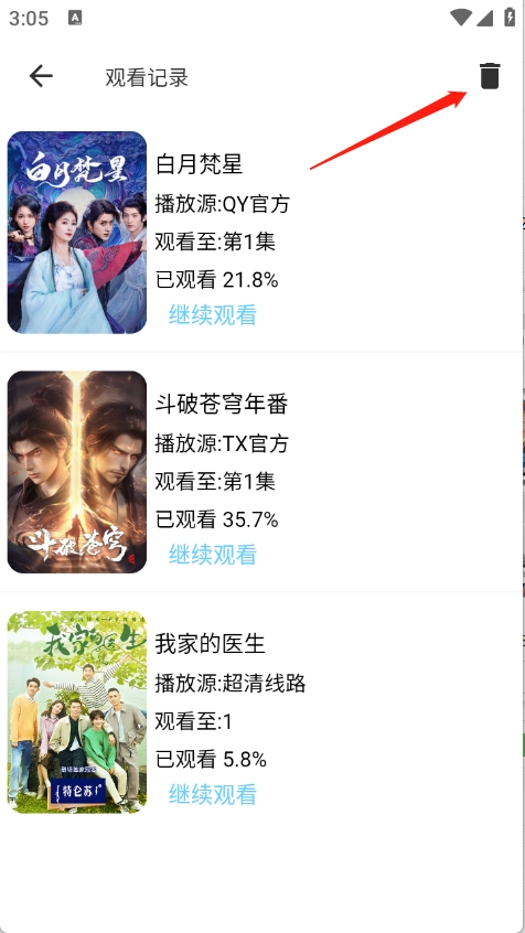 就会出现全部的观看历史了,点击右上角的删除。