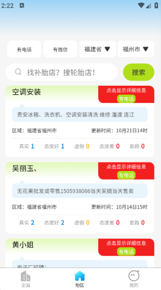 3. 点击页面下方的“地区”选项,就能查看周边的商家信息了。