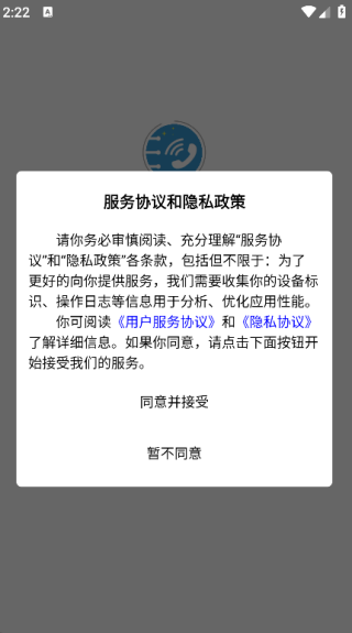 1. 并安装,点击‘同意并接受’,即可进入主页面;