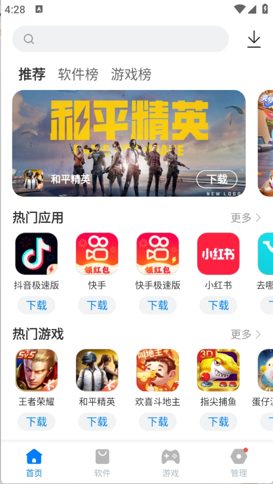 首页页面中为用户推荐了当前热门的软件和游戏资源。
