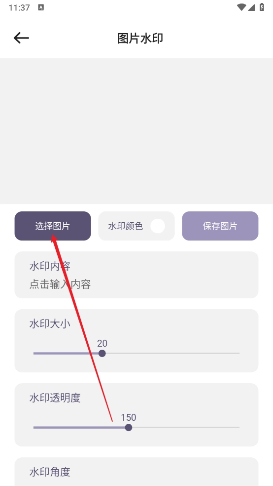 输入水印内容,调整其透明度与大小等参数,操作完成后点击“保存图片”按钮即可。