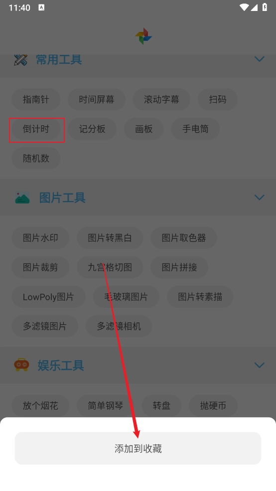 打开软件后,找到想要收藏的工具并长按,待弹出操作窗口时,选择点击“添加到收藏”选项即可。