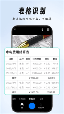1、能够对文档、名片、收据、发票等各类纸质及图片内容进行快速且精准的识别,并将其转换为可编辑的文本形式;