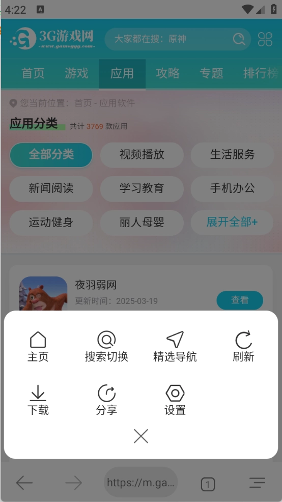 点击右下角的三条横线,就能对网页执行刷新、分享等操作。