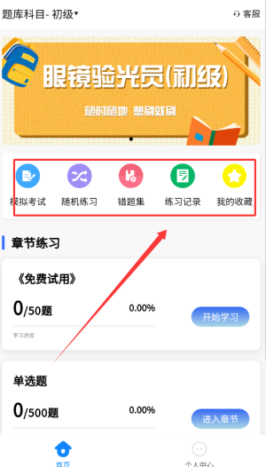 眼镜验光员考试学知题软件功能