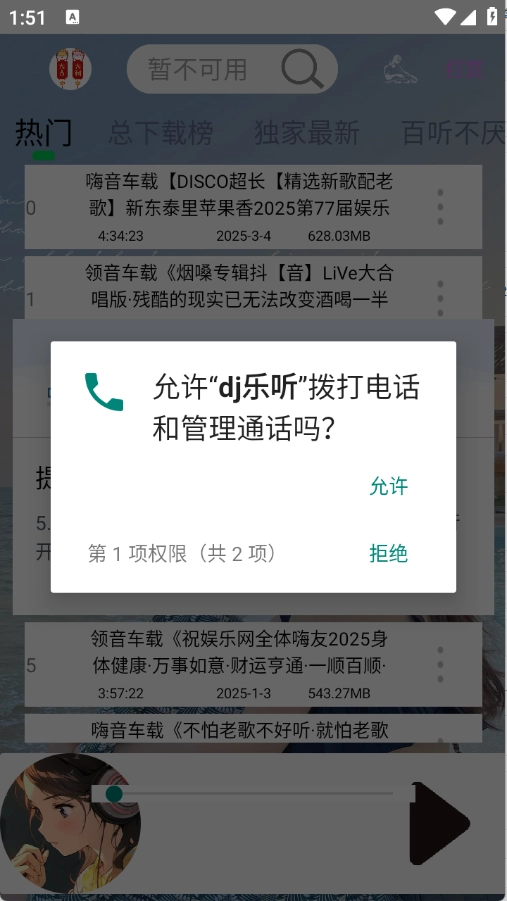 用户首先在3G游戏网dj乐听,开启相关的权限。