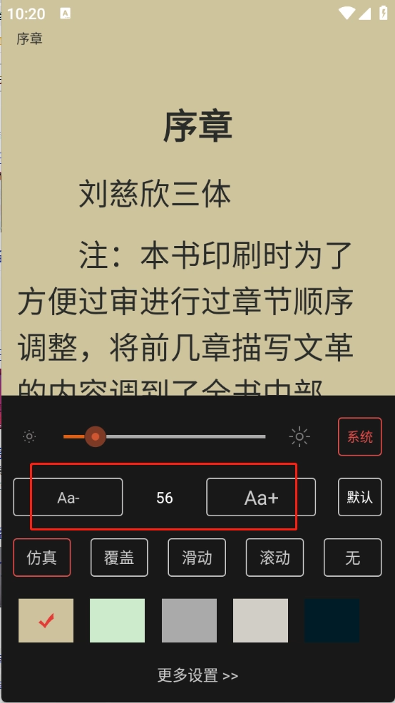 刘慈欣合集怎么调节字体大小