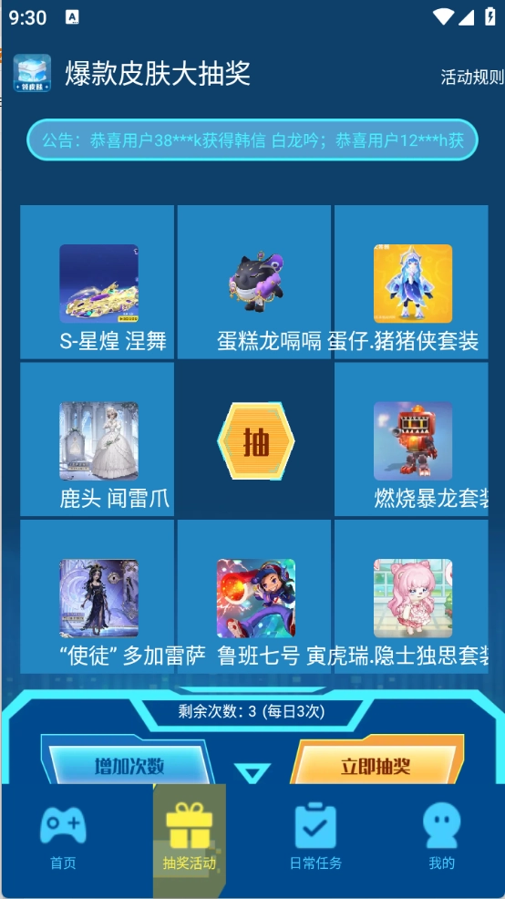 这里有超多皮肤福利等你解锁!平台提供海量游戏皮肤资源,只需完成简单任务就能免费兑换——比如每日签到、参与抽奖或是观看广告。皮肤款式丰富多样,你可以随时关注心仪的样式,而且所有皮肤都是限量发放的哦!