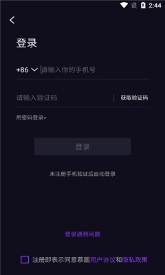 2、点击注册账号,选择手机号注册方式,输入手机号后获取验证码;