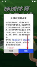 1、第一步是打开硬球体育应用,仔细阅读“服务协议和隐私政策”并点击同意;