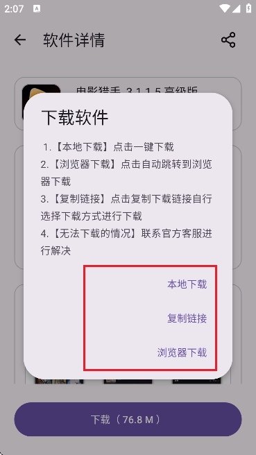 6、然后这里提供了三种方式,如图所示,有【本地、复制链接到第三方器中、浏览器】,大家可以根据自己的需求进行选择。