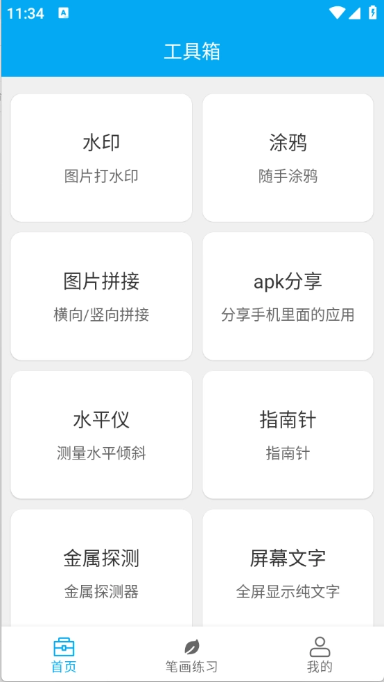 首页页面里有不少工具可供使用,像水印、水平仪和指南针之类的都包含在内。