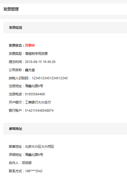 2、填写发票信息和邮寄地址