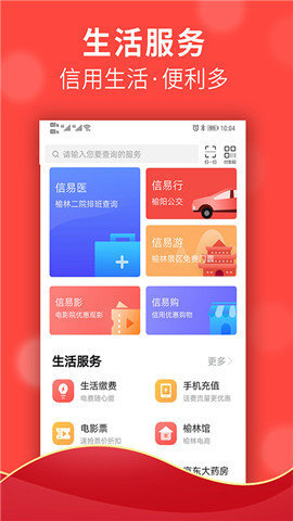 涵盖手机充值、生活缴费、智能记账、电影票购买、榆林生活馆特产选购、高速ETC在线办理等服务,让您随时随地尽享生活的便捷。