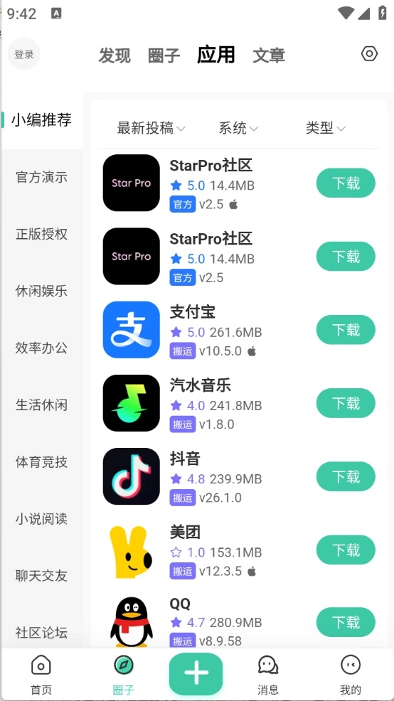 StarPro社区是一个免费的软件资源社区,涵盖了丰富多样的内容,软件库、源码分享、技术分享等应有尽有。在这里,用户既能发布帖子,也能学习更多知识,还可以加入感兴趣的圈子,结识志同道合的好友。
