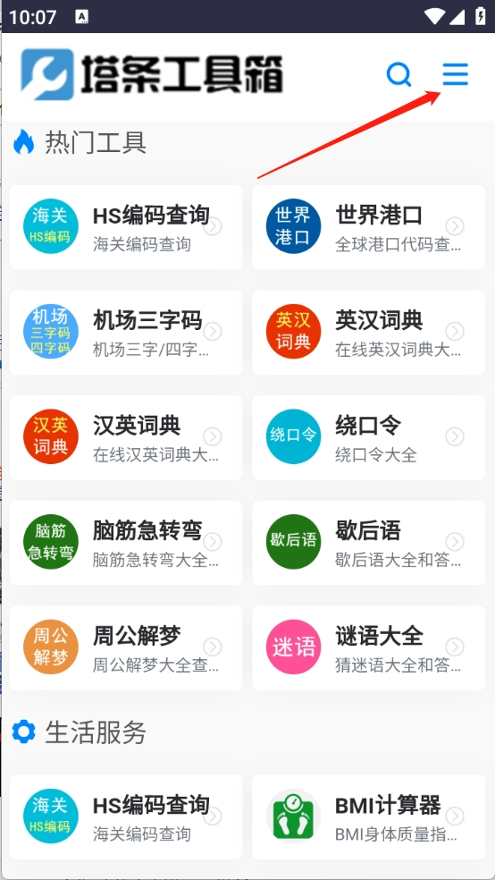 进入首页后,这里汇集了海量工具资源,接下来点击右上角的三条横线图标。