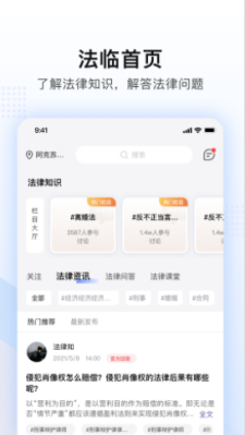1、法临平台专注于构建一个融合法律资讯、法律问答、法律课堂、轻法维权等功能的互联网法律服务平台,汇聚各类法律热点资讯,