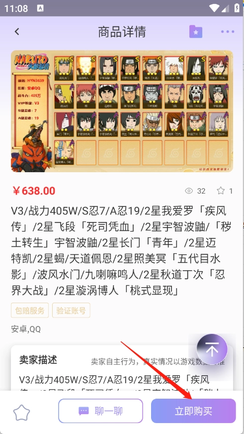 点开需要的游戏账号进入详情页点击“立即购买”。