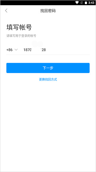 3、输入手机号后点击【下一步】,填写收到的验证码就能完成密码重置了。