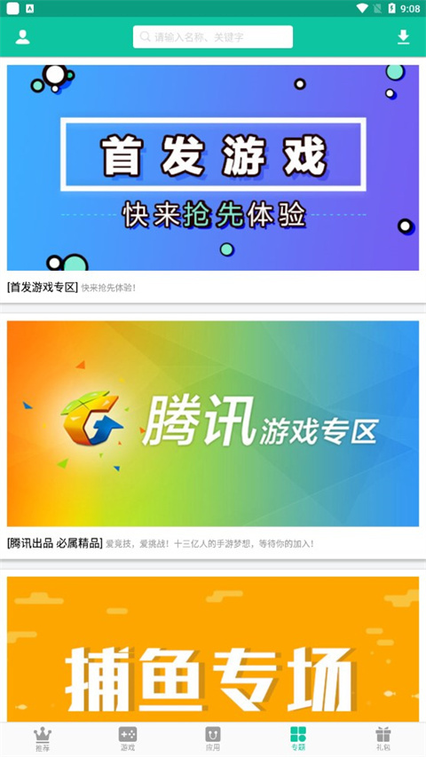 3、专题页:在这里可以抢先体验腾讯的首发游戏,还能争取热门游戏的测试资格。