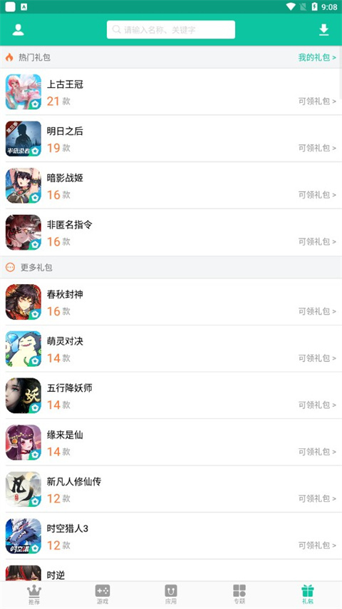 4、礼包页面:在这里能够领取各类游戏福利,像《明日之后》这款游戏就有19款福利可供领取呢。