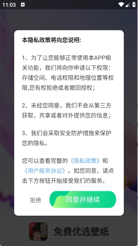 用户首先在3G游戏网免费挑选心仪的壁纸,同时需要同意平台的隐私政策和用户协议。