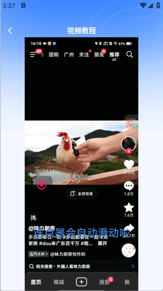 连点器就会自动滑动视频了。