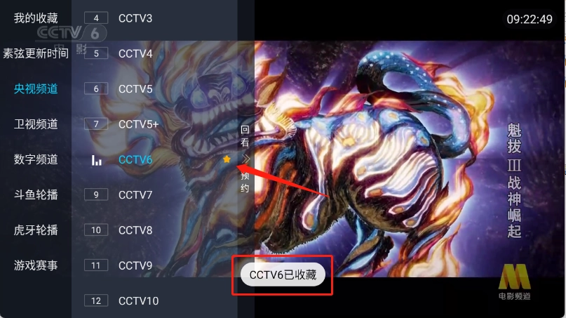 在左上角“我的收藏”中查看收藏的频道。