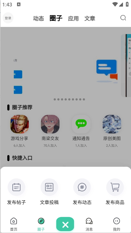 点击“+”,可以发布帖子、动态以及商品等。