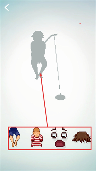 3、进入人物组装关卡后,选取被红色框标注的【条纹服饰人物部件】,对照上方的人物剪影进行匹配,从而完成该人物的部件拼接操作。