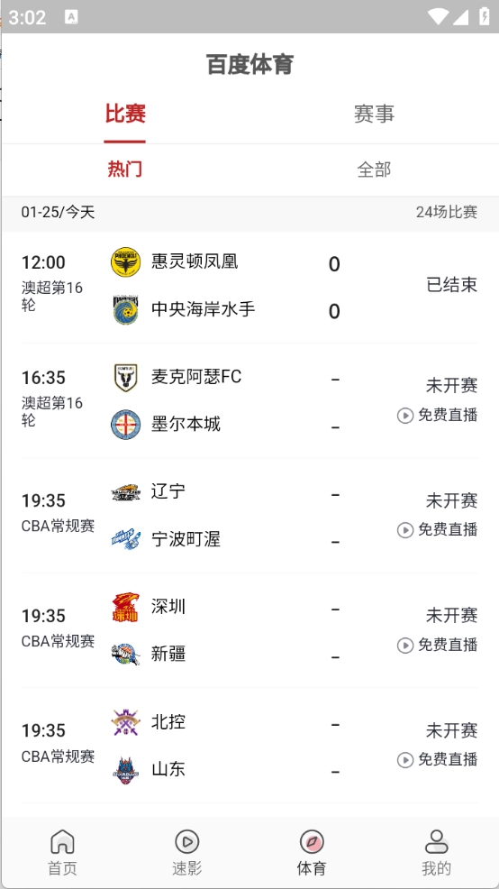 还有一个体育栏目,可以及时了解各种体育赛事。